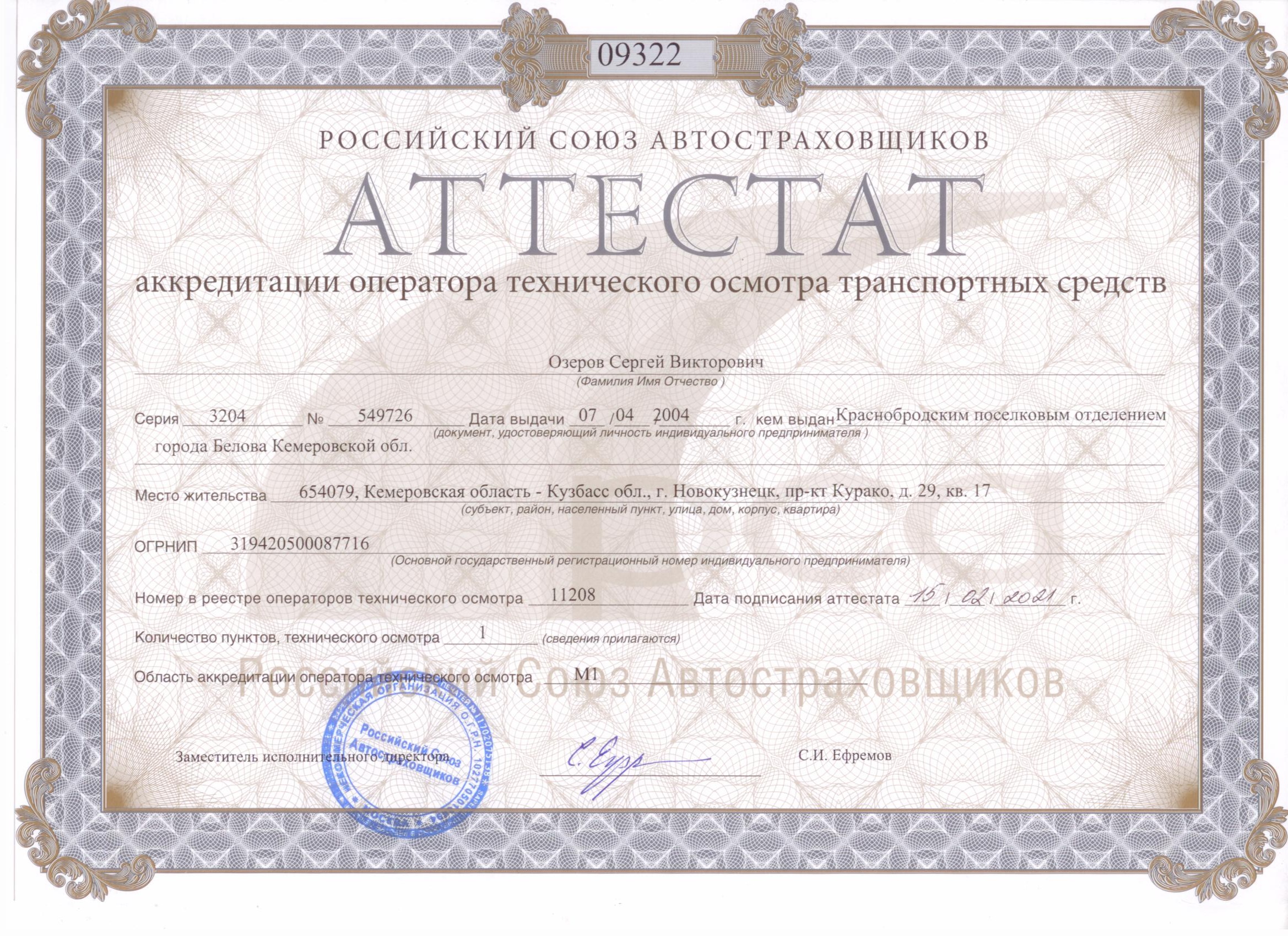 ИП Озеров С. В. - аккредитованный оператор технического осмотра, номер в реестре 11208